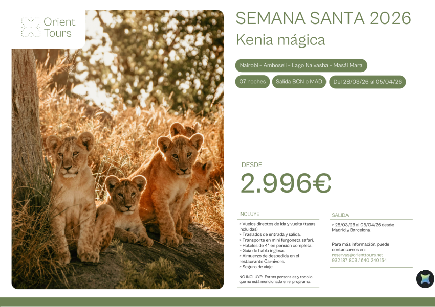 SEMANA SANTA 2026 - Kenia mágica 07 noches salida 28/03 desde bcn y mad